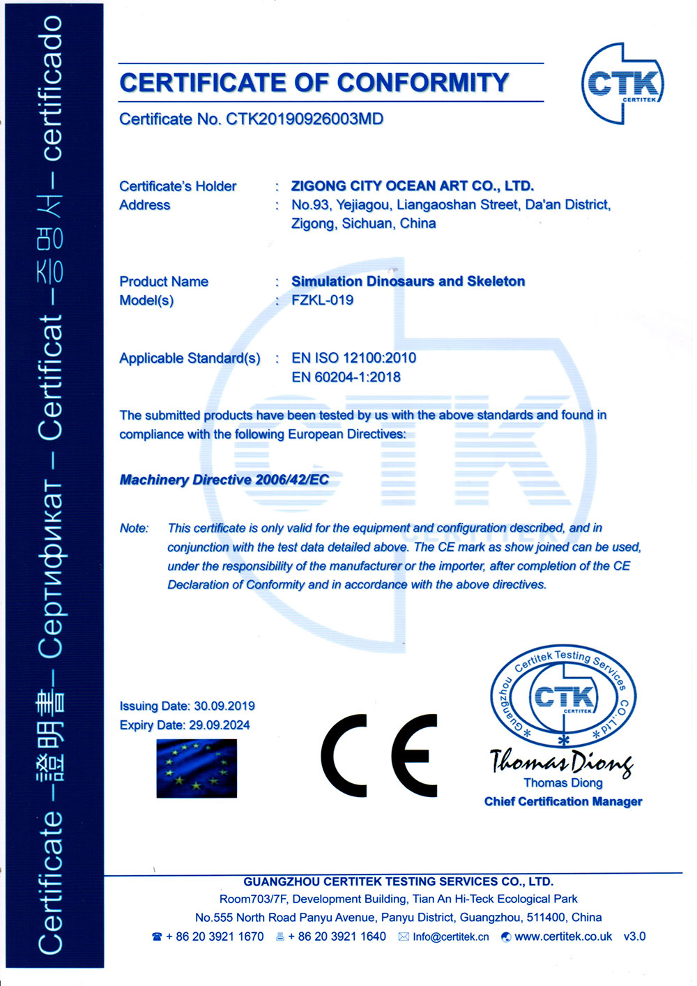 自A市大z艺术有限责d司简介自贡市大洋艺术有限责Q公司Qؓ中国恐龙展品制作基地Q成立于2009q_是专业从事恐龙化石骨架标本模型、仿真活体机器恐龙、仿真雕塑恐龙、玻璃钢恐龙、恐龙游乐场互动讑֤{展品的研制开发、出售和展览的高U技企业。ƈ在中国古生物专家的指gq行开发制作恐龙和仿真动物展品Q所制作的恐龙展品,被中国科学院鉴定为“优UU研作品”,被誉为“侏|纪”的再现者。公司占地面U?0000qxcI有一支专业研制恐龙标本模型和机器恐龙展品的职工队伍和一套具有先q性能的生产设备,q生产能力ؓ500万美元,其中U?0%的出口。我们研制和生的恐龙展品,以其造型逼真、表皮质感强、动作协调自如、组合情节科学、h(hun)格合理、售后服务佳而倍受国内外客L青睐和好评。十多年来,我们先后为美国、加拿大、阿根h(hun)、秘鲁、匈牙利、奥地利、荷兰、澳大利亚和我国的香港、台湑֜Z及北京自然博物馆、天z自然博物馆、上然博物馆、重庆自然博物馆、浙江自然博物馆、成都理工大学博物馆、太原中国煤炭博物馆、内蒙二q浩Ҏ(gu)龙博物馆、武汉中国地质大学博物馆、西峡恐龙蛋博物馆、朝阳鸟化石博物馆、河源恐龙博物馆、常州中华恐龙园、云南禄C界恐龙谷{地区的博物馆和恐龙主题公园以及人民公园制作和提供了相当数量的恐龙展品。同Ӟ先后为重庆恐龙公园、v南恐龙公园、晋江新世纪恐龙公园、番古生物博物馆、东莞古生物博物馆、西峡恐龙蛋博物馆设计和陈列布展?/div>